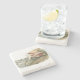 The coasters are gorgeous, a quality feel and heavy weight. They look like a precious archeological find. A rustic stone juxtaposed with a modern floral black and white print. I like the way the print goes slightly imperfect on the cut stone edges giving them a kind-of natural beauty.