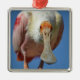 Closeup roseate Spoonbill (Platalea ajaja) seen from front with its big beak on blue sky background