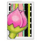 Painted pink rosebuds joyfully scattered against pink & green dots, perfect for any cheerful, sweet occasions!.