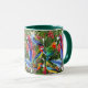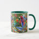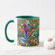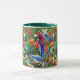 Original fine art design of colourful Rosella parrots from Australia by designer Carolyn McFann of Two Purring Cats Studio on a quality and customisable Ringer coffee mug for bird lovers.
