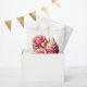 enchant your senses with these luxurious cupcakes, which are decorated like a work of art! Each cupcake is wrapped in a fine, golden paper shape and decorated with a masterfully crafted decoration of tender pink rose fondant and elegant, swept cream topping. The petals, in soft pink and pink tones, look almost lifelike and are accompanied by golden leaves in a stylish manner. The topping is characterized by a harmonious color scheme of white, gold and pink, giving you a luxurious, festive atmosphere. Perfect for weddings, anniversaries or other special occasions where aesthetics and taste are celebrated equally.