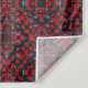 A complex, symmetrical pattern covers the entire space, featuring intricate red and blue geometric shapes. The repeating design creates a mesmerising, kaleidoscopic visual effect.
