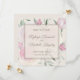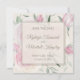 Announce your upcoming wedding date with modern elegance. The pink roses and greenery fills the background, while an overlay is centred displaying the couple's names, wedding location, and date. Behind the save the date info is a glimpse of the floral background.
