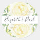 Seal your invitation envelopes or favours with these beautiful watercolor floral wedding stickers featuring watercolor yellow roses, olives and foliage. Your names are written in hand written calligraphy typeface.