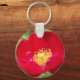 A macro photograph of a bright red single-petal miniature rose with a sunny yellow centre.
