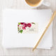 A bright, bold floral of roses in shades of burgundy and cream is the focal point for many of the pieces of this wedding suite that also features elegant script text and modern design layouts. The wedding address label shown here has a corner border of roses and space for your new last name. Easily enter your names and address details using the provided template. Search ID584 to see all the matching pieces in this beautiful wedding set.