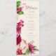 A bright, bold floral of roses in shades of burgundy and cream is the focal point for many of the pieces of this wedding suite that also features elegant script text and modern design layouts. The wedding menu shown here has a side border of roses and a beautiful watercolor abstract on the reverse in rich burgundy and plum. Easily enter your personal menu details, wedding date and bride and groom's initials using the provided template. Search ID584 to see all the matching pieces in this beautiful wedding set.