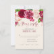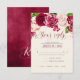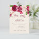 A bright, bold floral of roses in shades of burgundy and cream is the focal point for many of the pieces of this wedding suite that also features elegant script text and modern design layouts. The wedding RSVP card shown here has an upper border of roses and a beautiful watercolor abstract on the reverse in rich burgundy and plum. Easily enter your wedding date and menu requirements using the provided template. Search ID584 to see all the matching pieces in this beautiful wedding set.