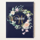 Pretty monogram planner, featuring a beautiful white script name with a complimenting gold initial that is framed by a delicate watercolor floral rose garland on a navy blue background. Personalise to create a special keepsake gift to treasure! Designed by Thisisnotme©