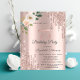 A modern, chic, and glamourous with rose gold glitter drips, and roses on a rose gold background.