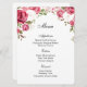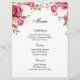 Menu card is shown with a art print of lovely pink roses accented at the top of the card, shown on the basic white card paper.