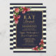 Roses Navy Stripes and Gold Engagement Party Invitation