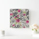 Roses On Animal Pattern Square Wall Clock