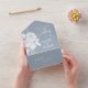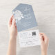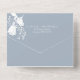 Delicate white Roses silhouettes on a soft dusty blue background give this budget-friendly, all-in-one wedding invitation a trendy, modern look. The tear-off RSVP is a mailable card, or your guests can just scan the customisable QR code for all you wedding details.