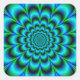 An abstract fractal image with an optically challenging rosette design in blue, green and turquoise, by Objowl.