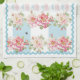 A 2018 kitchen towel calendar reminiscent of vintage and retro calender towels, in a soft cottage rose stripe print over aqua stripes.