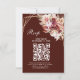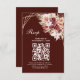 Elegant rosewood and gold geometric QR code wedding RSVP card with burgundy florals — scan to RSVP on your wedding website.