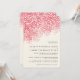 I'm not really sure I can put it in words, but this invitation is really great. It's a bunch of dots falling from the sky, but the pretty pink color, the wording all at the bottom right, it just looks fantastic. I wasn't very sure about it but I ordered a sample, and it really caught my eye and all my "second opinions" put it in the top three if not #1! Be careful when you're enetering your information because those D O U B L E S P A C E S (one between letters and 2 space between words) are tricky. When I got my sample I had mis-typed one place. The Signature Matte (+ 11cents a card) made a huge difference, as always.