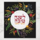 Set a festive Rosh Hashanah Table with Rosh Hashana Colourful Floral Wreath Wine Labels with pomegranates and honey on a Black Background. Shanah Tovah in HEBREW. Jewish New Year wishes. Includes the English text "Wishing you a Sweet New Wear • Shanah Tovah" . Great for gift giving too. , A beautiful way to wish friends and family a Happy and sweet Jewish New Year. If you would like to see a custom variation of this design please email bestdressedbread@gmail.com. We love to collaborate
