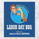 Stylish Rosie the Riveter LABOR DAY BBQ wine labels, with mid blue background. The design shows the iconic Rosie appearing inside a light cyan blue circle, with bold typography.. TEXT IS CUSTOMIZABLE so you can add the host name(s) and event details. These Labour Day Barbecue wine labels are a stylish addition to your summer party decor and a great way to help celebrate the Labour Day weekend with your friends and family.