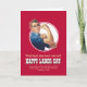 Stylish LABOR DAY BBQ Rosie Riveter folded holiday card, with deep red background. The design shows the iconic Rosie appearing inside a white circle, with bold typography. ALL TEXT IS CUSTOMIZABLE so you can add your name and short personalised message to replace the Christian Bible verse - 'Come to Me all who are weary and heavy laden, and I will give you rest', which is based on Matthew 11;28. This Labour Day greeting card with Rosie the Riveter is a stylish way to help celebrate the Labour Day weekend with your friends and family.
