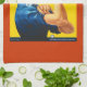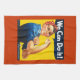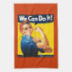 Lacking motivation to do the dishes? In need of a little girl power? Try this retro look Rosie the Riveter themed kitchen towel for inspiration. The design is an illustration of the iconic Rosie the Riveter, star of a vintage American WW2 poster, flexing her mighty muscles saying "We Can Do It!" to her sister Americans, as she urges women to work in factories to help the war effort. The famous poster by artist J Howard Miller shows Rosie dressed in her trademark blue overalls and red and white polkadot Forties' headscarf. You can change the colour of the red background to suit by using the customise button.