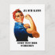 The most famous picture of Rosie the Riveter is "We Can Do It!" Poster by J. Howard Miller, showing a woman with a blue shirt, a red peel and a muscular arm that is poised for strength and determination. Write your own text.