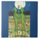This tile would be perfect as a memento or gift to commemorate the wedding or anniversary of any couple who appreciate the Roswell Alien UFO crash story, or just share a passion for science fiction! My watercolor painting features two green figures in a New Mexico desert landscape with their crashed spaceship in the distance. They're admiring a lovely moon with a heart image against a starry night sky. The background is dark blue. There is no added text on this tile version. Available in two sizes. Zazzle also offers perfectly sized trinket boxes and frames for these tiles. Whimsical, unique, original artwork & design by Tuzi Williams.