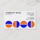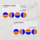 A business card template with an attractive rotating geometric circles motif where each circle is rotated 90 degrees to the one previous to it. Company name, Business type/quote, along with address and telephone details on the front, with name, title, email and web details on the reverse. However the design can be customised in a variety of ways.