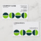 A business card template with an attractive rotating geometric circles motif where each circle is rotated 90 degrees to the one previous to it. Company name, Business type/quote, along with address and telephone details on the front, with name, title, email and web details on the reverse. However the design can be customised in a variety of ways.