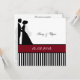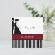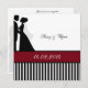 Schwarzweiss-Damastdruck mit einem roten Band, eine Silhouettebraut und -bräutigam und Bereiche, die Sie mit Ihren Namen personifizieren können, Monogramminitiale, Hochzeitszeremonie und Empfangsinformationen über eine kundengebundene wedding Einladung, die nobel und alle in einer traditionell ist!