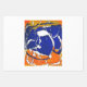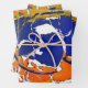 Abstract Expression contains the colours medium blue, white, dark orange, olive, black, gold, orange.