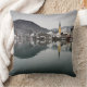 Photo throw pillow cushion with a winter scene with the reflection of the yellow church tower in the still water of Tegernsee lake and with snow on the roofs of the houses of the town Rottach-Egern with the Alps mountains in the background in Bavaria (Bayern), Germany.