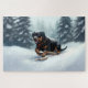 Rottweiler Christmas snow winter Throw Pillow Jigsaw Puzzle