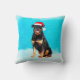 Rottweiler Dog in Snow With Santa Hat Cushion