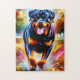 Rottweiler Dog Portrait Acrylic Art Print Dog Jigsaw Puzzle