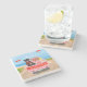 The coasters are gorgeous, a quality feel and heavy weight. They look like a precious archeological find. A rustic stone juxtaposed with a modern floral black and white print. I like the way the print goes slightly imperfect on the cut stone edges giving them a kind-of natural beauty.