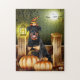 Rottweiler Dog with Witch Hat Halloween Jigsaw Puzzle