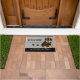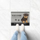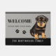 Cute doormat featuring an illustration of a Rottweiler puppy. Customisable background colour and texts. Perfect gift for the dog lover or Rottweiler owner.