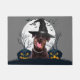 Adorable cartoon-styled Rottweiler wearing a witches hat in a spooky cute halloween pumpkin patch with a full moon and bats flying in the background. See more items with this design at my Zazzle shop www.DoggyStyleDesignStudio.com