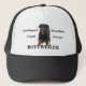 This Rottweiler hat features our wonderfully loveable and beautiful German Rottweiler, Heidi. Heidi is seen on this hat with her head cocked in a comical way and her soft brown eyes looking into your own. This Rottweiler hat is perfect for Rottweiler lovers who know the protective, loyal, comical, and loving nature of this breed. Under the photo of our German Rottweiler is the word, ROTTWEILER. Around the photo are words describing the charming nature of this breed, Intelligent, Guardian, Loyal, Friend.