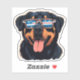 The stick looks amazing. Unfortunately, it would not stick on our suitcase as it was textured. When we found a non-textured (smooth) suitcase, the sticker stuck and looks great. The printing looked awesome.