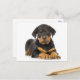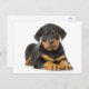 This fun canine postcard features an image of a beautiful brown and black Rottweiler puppy highlighted against a crisp white background. This sweet pup is ready to help you let friends, family, and customers know your thinking of them.