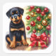 Rottweiler Puppy Next to a Christmas Tree Square Sticker