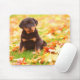 Rottweiler Puppy Sitting In Autumn Leaves Mouse Pad
