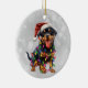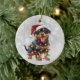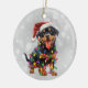 Rottweiler Puppy Wrapped in Christmas Lights Ceramic Ornament