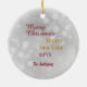 On the front of this Holiday ornament is an image of a Rottweiler puppy wearing a Santa hat and wrapped in coloured Christmas lights. The image is set against a festive silver bokeh background. The back of the ornament has the same background with custom text that currently says "Merry Christmas Happy New Year", the date and your signature. Cute for anyone, but especially for Rottie fans.