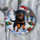 Rottweiler Running in Snow with Christmas Hat 6 Cm Round Badge