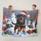 Rottweiler Running in Snow with Christmas Hat Fleece Blanket