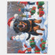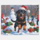 A powerful Rottweiler runs happily through the snowy winter scene, wearing a festive red Christmas hat. This bold design highlights the breed’s strong build, loyal nature, and confident personality while capturing the warmth and joy of the holiday season. A striking winter moment full of festive cheer.